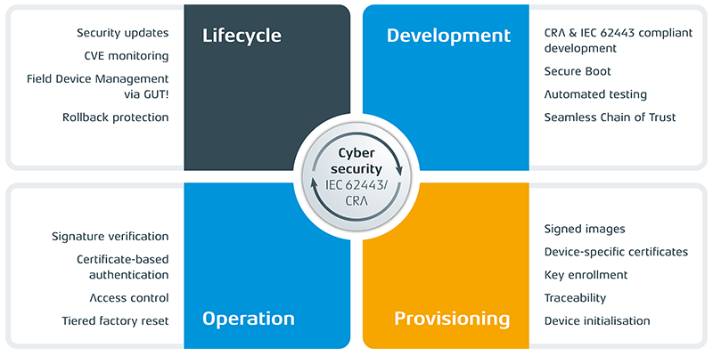 Embedded Systeme sind heute stärker vernetzt als je zuvor – und damit angreifbar. Mit dem Cyber Resilience Act (CRA) und der IEC 62443 wird Security zur Pflicht. Hersteller müssen die Sicherheit ihrer Geräte über den gesamten Lebenszyklus nachweisen – von der Entwicklung bis zum letzten Update.